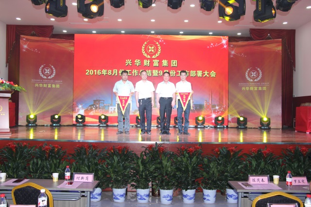 庆典晚会上还对八月份工作进行了总结并为在八月份四项工作评比先进单位炼钢厂和财务部颁发流动红旗。