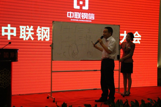 董事长讲评了7月份工作,详细介绍了中联钢信电商平台运营模式,描绘了中联钢信电商平台通过先进的设计理念和最具实力的核心股东加上高水平的电商管理团队最终建成全国实力最强的“空中钢贸城”的宏伟蓝图。陈董在讲话中提到,从工业1.0发展到现在的3.0,由于互联网的出现,人们生活发生了翻天覆地的变化。目前德国提出工业4.0,中国提出中国制造2025,中联钢信顺应时代发展要求,在钢铁产能严重过剩背景下,联合国内优质钢铁企业、金融机构共同打造第三方电商平台,通过扁平中间环节,直接对准终端客户,实现企业效益最大化。陈董还就中联钢信金融平台的效益点进行了详细讲解。