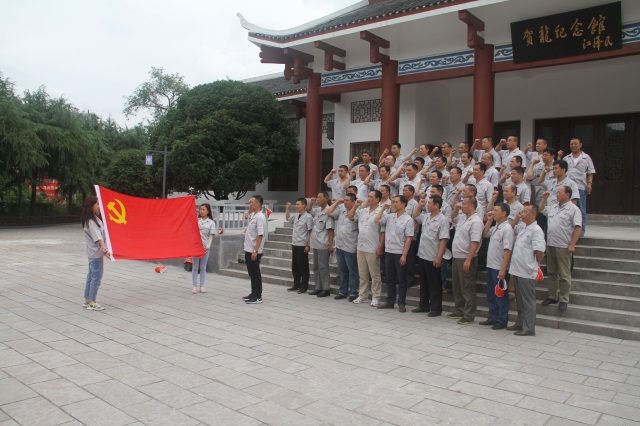 6月27日,公司党委还组织了全体党员赴张家界桑植县洪家关,集体参观贺龙故居和贺龙纪念馆,缅怀中国人民解放军的创建人贺龙元帅,重温红色经典,接受革命传统和爱国主义教育。进一步熟悉了解贺龙战斗的一生,光辉的一生和两把刀起义的事迹,并在贺龙元帅的铜像面前深鞠躬献花,重温入党誓词。
