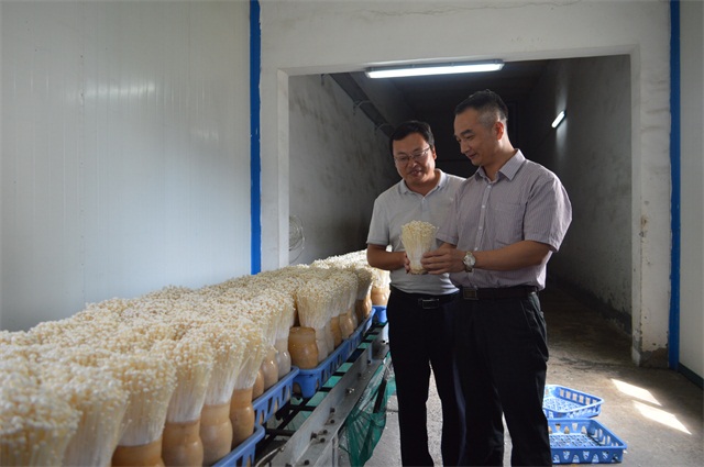 在考察期间,陈茂春董事长一行实地参观了金针菇整个生产工艺流程(包括配比拌料—自动装瓶—高温杀菌—自动接菌—恒温培养—出芽—成品包装),详细了解了其生产加工能力、生产周期、生产成本构成、销售利润率、物流运费等情况,山东友和菌业林总及公司技术人员一一作了解答,并介绍了金针菇、香菇两个品种的市场发展前景。