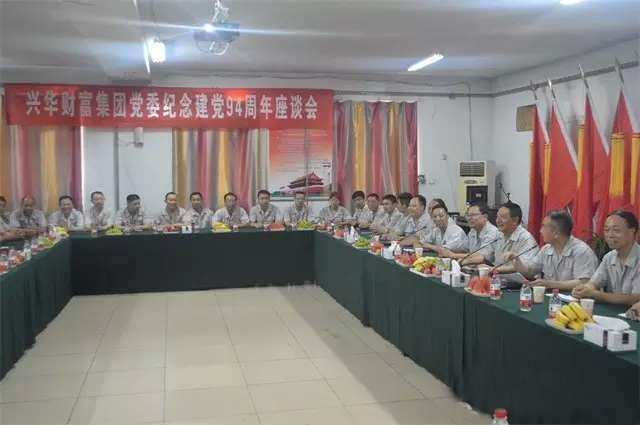 7月1日,专家楼三楼焕然一新,新中国历届国家领导的伟人像下党旗格外鲜艳,众星捧月的主席台格外闪耀。我们怀着万分的激动和喜悦之情,迎来了中国共产党94岁生日。为缅怀党的光辉历程,讴歌党的丰功伟绩,抒发全体党员爱党情怀,展望兴华发展的美好未来。7月1日下午2:00兴华财富集团党委在专家楼三楼隆重召开纪念建党94周年座谈会。集团公司党委书记、董事长陈茂春,党委副书记、总经理李福忠、生产副总付新岗、行政副总高振伟出席此次会议。各支部全体党员整装一新、精神抖擞参加会议,大家欢聚一堂,共同庆祝中国共产党成立94周年。