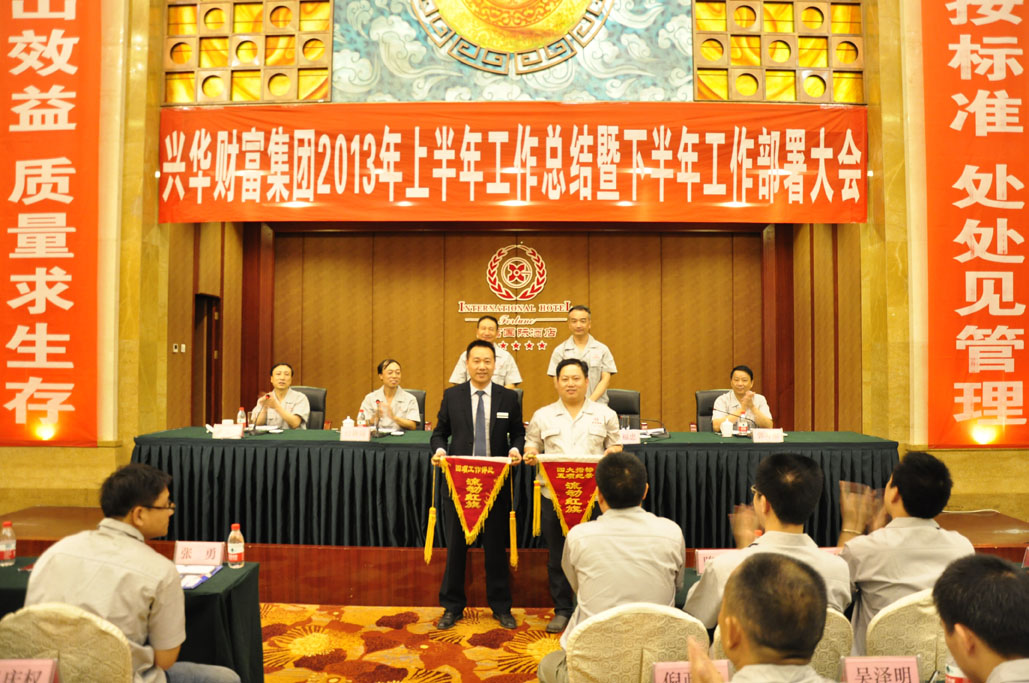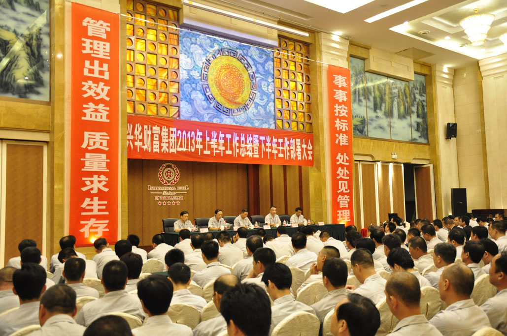 随后集团公司总经理李福忠宣读了2013年科级干部任免决定,并对集团公司上半年工作进行了全面点评。并就做好下半年的工作,提出四点工作要求:一、提高安防意识,抓好安全隐患大检查工作。传达贯彻国务院、省、市安全生产和环境保护相关会议的精神,简述了国务院总理李克强在6月14日主持召开国务院常务会议,专门部署大气污染防治的十条措施。分析了当前安全环保严峻的形势,要求大家要高度重视安全环保工作,制定第三季度的安全措施,落实隐患检查工作,之后集团公司董事长陈茂春宣读了2013年处级以上干部任免决定,围绕上半年工作总结、当前形势及主要工作、国外企业情况等三大主题作重要讲话,对集团公司2013年上半年生产、安全、设备技改、人才培养、党建、国外投资等工作,做出六点要求:一、优化生产管理,提升经济指标。二、加强工程管理,确保工期落实。三、优化经营管理,提高供销质量。董事长陈茂春提出经营管理工作的总体思路:延伸采购、创新开放、货比三家、直接对厂、追求廉洁。四、加强财务管理,提高资金效率。五、加强行政管理,提高工作效率。六、加强人才培养,推进兴华健康发展,实现美好的企业梦和家园梦。