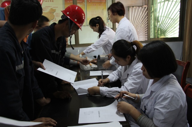 10月8日,兴华钢铁公司邀请武安市第一人民医院相关医护人员来公司为广大职工进行健康体检,本次检查项目包括测量血压,肺功能,电测听,血检,尿检,胸片,心电图等,体检现场,员工不时交流各种健康问题。
