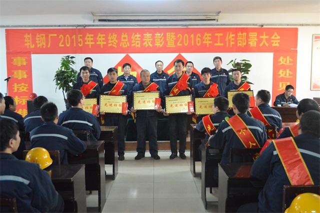 会议还给荣获2015年度轧钢厂先进个人、先进班组、技术创新、先进车间(科室)代表颁奖并合影留念。大会在一片热烈的掌声中圆满结束。