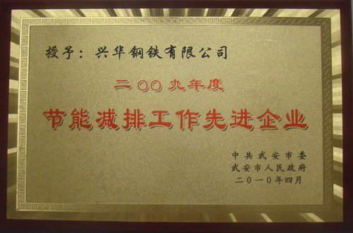 祝贺我公司荣获“2009年度武安市节能减排工作先进企业”称号