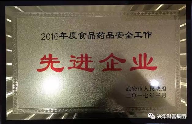 2017年4月6日,由武安市人民政府组织的全市食品药品安全工作会在武安宾馆召开,财富国际酒店作为餐饮行业代表,荣获2016年度全市食品药品安全工作“先进企业”荣誉称号,总经理助理连杰荣获全市食