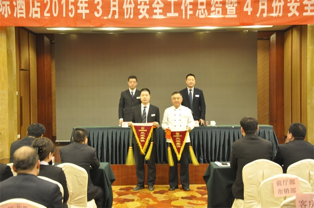 会议第一项,由酒店经营部经理连杰作三月份工作总结报告。三月份,财富国际酒店加大优惠活动力度,强抓内部管理,开展了储值卡充值返利,客房折上折活动,客房入住率有了明显上升,顾客反映良好,同时也带动了其他项目的经营。为加强固定资产管理,提高资金利用效率,酒店对各区域固定资产进行盘点,明确各类资产管理责任部门。临近五星复核,酒店各区域的硬件整改也在按期施工。一线部门加强细节卫生、物品摆放的管理和服务礼仪培训、加大检查力度,提高对客服务质量。此外,连杰还从行政管理、人事管理、物业管理、安全管理等方面进行了全面总结,并针对三月份存在的问题,提出四月份工作重点。会上,酒店对三月份优秀员工、先进集体和好人好事给予了表彰,向十名优秀员工、两个先进集体和一名好人好事人员授予证书和奖励,对他们在三月份的辛勤工作予以了肯定。