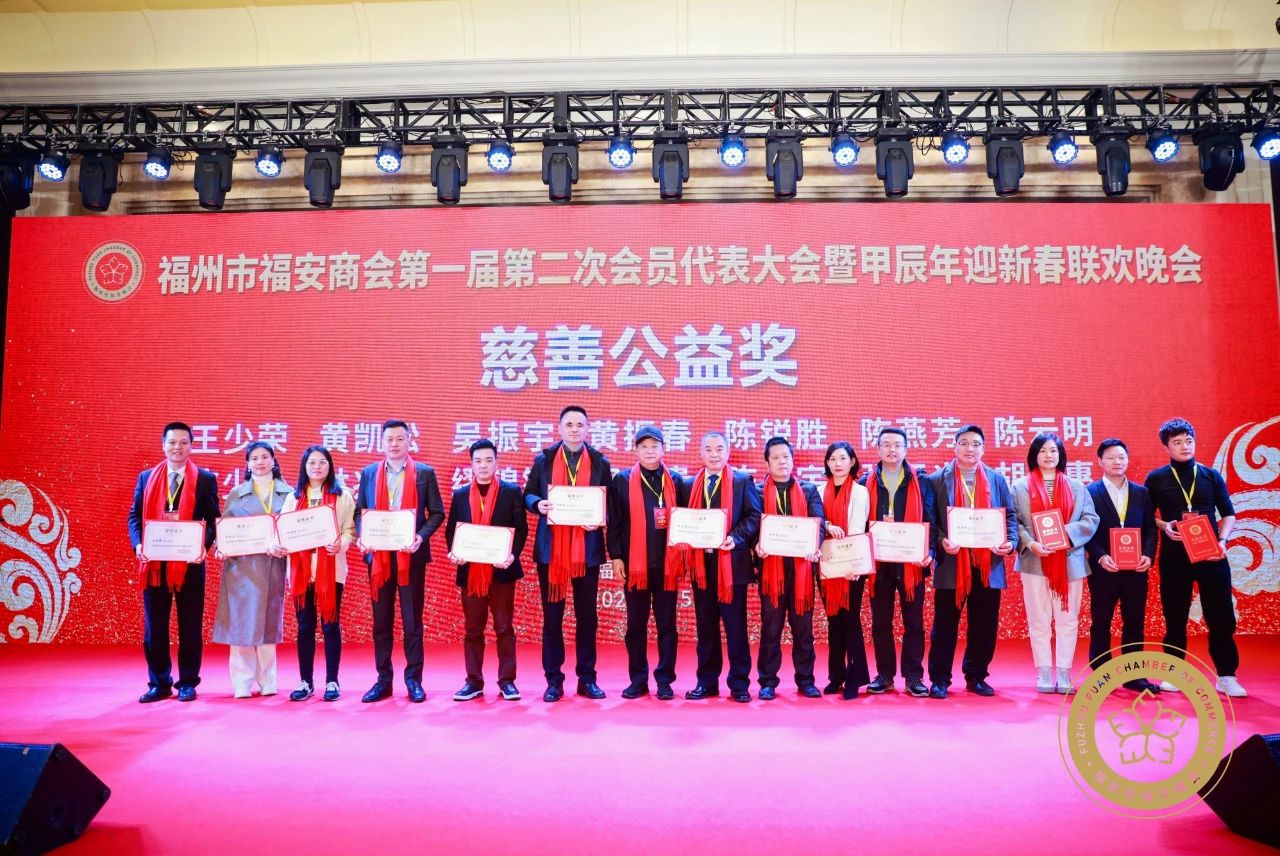 2024年1月25日,福州市福安商会第一届第二次会员代表大会暨甲辰年迎新春联欢晚会在福州悦华酒店举行。福建省政协原副主席陈绍军、省委原副秘书长兼办公厅主任李育兴、省人大内司委原主任詹毅、省广电局原局长陈必滔等老领导,福州市工商联副主席陈曦,福安市委常委、统战部部长缪碧华,福安市政府党组成员、副市长连坚等领导到会致辞并授牌。福州市福安商会会长王少荣,名誉会长、兴华财富集团董事长陈茂春在大会上致辞。