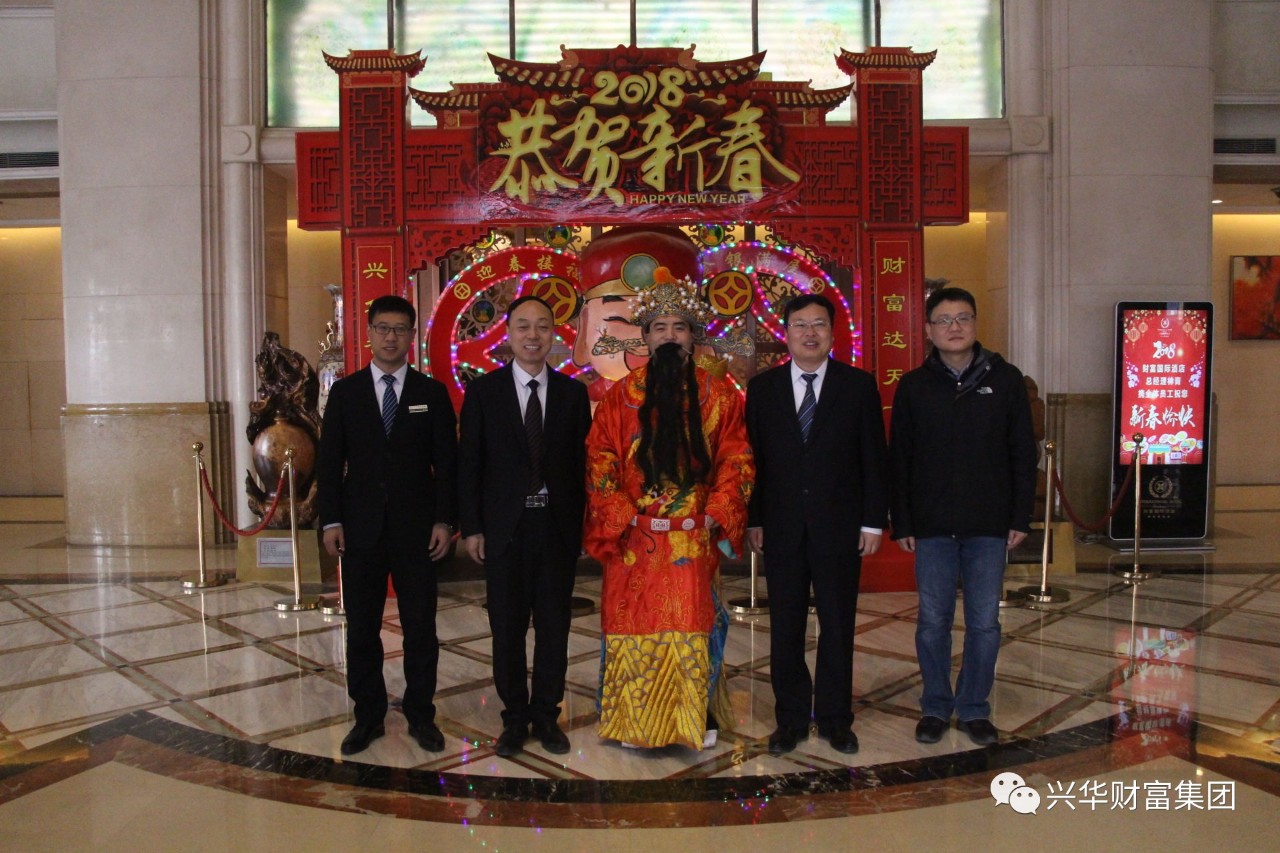 财富酒店大堂鲜花锦簇,年味十足。一进门象征财源滚滚的财神扑面而来,分外引人注目,大家纷纷与财神合影,祝愿新年财运亨通。
