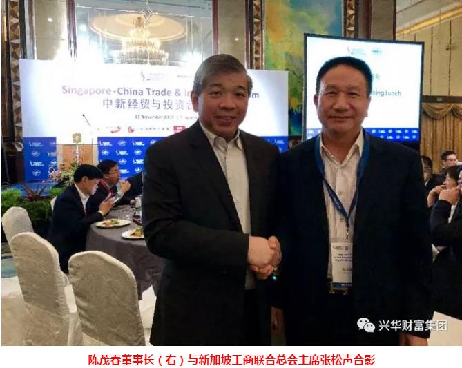 继2017年越南APEC峰会后,兴华财富集团、中联钢信电商公司董事长陈茂春随行中国代表团前往新加坡陆续参加了访问大华银行和中新经贸与投资合作论坛等相关经贸活动。