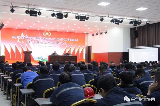 2017年12月7日晚18:30,兴华财富集团召开11月份工作总结暨12月份工作部署大会。集团公司董事长陈茂春、副总裁付新岗、李福忠、董事长助理高振伟、王法清出席会议。集团公司各一级、二级、三级公司负责人及班长以上管理干部、工程技术人员共计400余人参加大会。