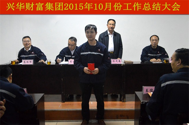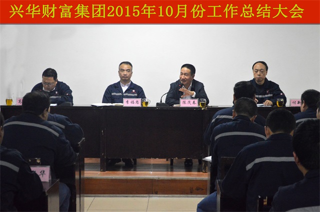 2015年11月6日晚19:00,集团公司在专家楼三楼召开10月份工作总结大会。董事长陈茂春、总经理李福忠、生产副总付新岗、行政副总高振伟出席会议。公司副科级以上干部、工程技术人员参会。会议由行政副总高振伟主持。