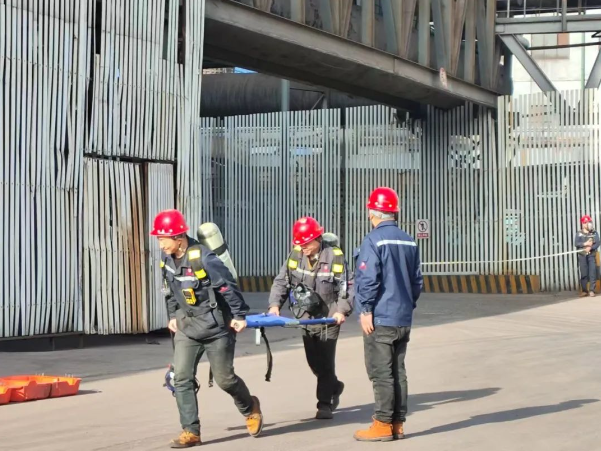 第一时间,车间启动《棒材紧急救援预案》发布疏散命令,贯彻“救人第一、环境优先”原则,开展人员搜救,防止污染扩散、尽量缩小污染范围,避免对环境造成二次污染。