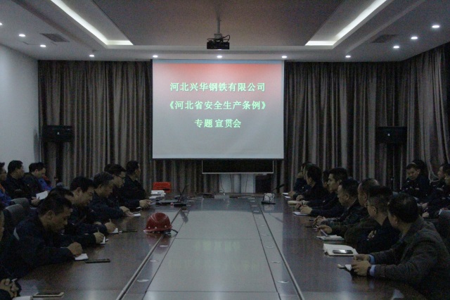 为进一步落实武安市对《河北省安全生产条例》宣贯工作安排会议精神,全面提升公司全体干部职工的安全意识,确保公司安全生产形势持续稳定运行,兴华钢铁公司自3月1日起,开展为期10个月的《河北省安全生产条例》宣贯活动。