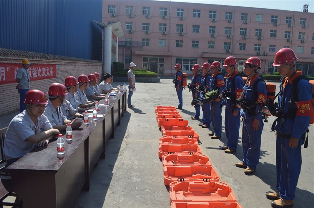 此次大赛共分为3个比赛项目,分别为个人项目的空气呼吸器佩戴,心肺复苏和团体项目的综合应急救援演练。公司成立应急救援队伍比武活动领导小组观摩、评判,保证应急救援演练的全程公正、有序、顺利进行。当看到每一个队员都能在指定时间内完成呼吸器佩戴,能按规定的程序和步骤完成心肺复苏,每一个应急小分队高效规范的组织现场救援,整齐有序的经过主席台接受评判时,观摩比赛厂部领导纷纷表示,此次的比武大赛是成功的,演练过程中,认真执行演练步骤和标准,每一组队员都具备高素质的应急救援的能力,并能团结协作的进行救援,组织人员救生、现场安排警戒、人员疏散,现场问题处理有序,达到了应急救援演练的预期效果。