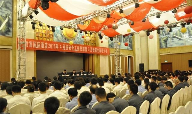 5月6日下午3时,财富国际酒店在多功能厅召开四月份工作总结暨五月份工作部署大会,对酒店四月份各项工作进行总结,并部署五月份工作重点。会议由财富国际酒店经营部经理连杰主持,酒店总经理吴铃华、行政副总经理林青,行政总厨方峰军出席,各部门经理及员工四百余人参加了会议。